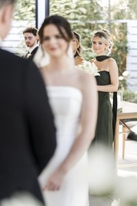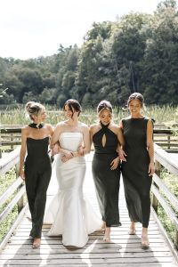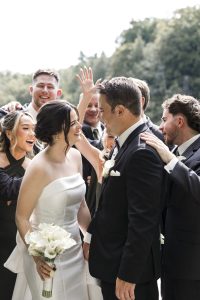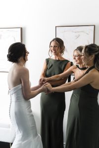 Holly’s bridal prep kicked off the day with her closest friends, laughter, and champagne. Her girls were full of energy, and the room was buzzing. From the moment she slipped into her dress, the vibe was pure excitement. Her dress? Absolutely stunning. Classic, elegant, and made just for her. Every detail was on point — from her earrings to her lace heels.