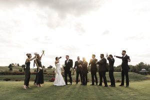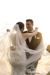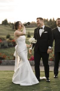 Now here’s something you don’t see every weekend — Dzmitry arrived in a helicopter. Yep, you read that right. As guests looked up in awe, the chopper made a dramatic entrance right onto the golf course. It was the perfect move for a groom who knows how to make an entrance. Giving the images an extra boost of awesome!